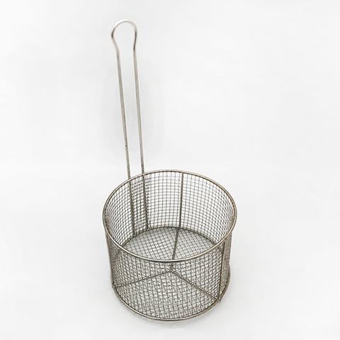 Cesta redonda de acero inoxidable para Freír con un mango alto para colgar fácilmente; Cesta de acero inoxidable para alimentos, patatas fritas y aperitivos.